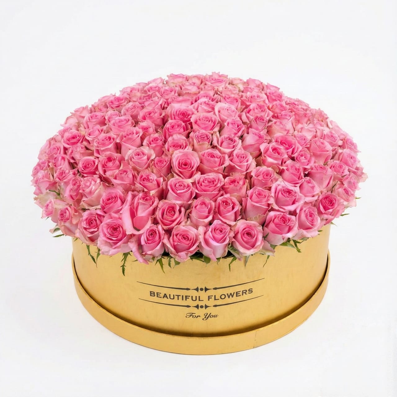 A stunning arrangement of 180 premium pink roses, elegantly presented in a golden round box — Pink Royale is the ultimate expression of love, beauty, and sophistication. Perfect for grand celebrations, romantic gestures, or unforgettable surprises. A floral statement that speaks louder than words.
